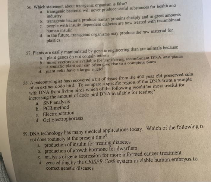 As crispr enabled targeted genome editing in a simple, efficient, and economical manner, the process of creating transgenic animals became simpler in the span of just a few years. A genetically modified organism (gmo) is any organism whose genetic material has been altered using genetic engineering techniques.the exact definition of a genetically modified organism and what constitutes genetic engineering varies, with the most common being an organism altered in a way that does not occur naturally by mating and/or natural recombination. Genetically modified organisms (gmos) are produced by inserting genetic material (sometimes from another species) into a plant such that the new genetic material will provide the plant the ability to exhibit some desirable trait (i.e., genetic engineering). Dec 26, 2018 · pros of cloning. Selecting a single gene that may result in a desired trait and inserting that gene directly into the chromosome of an organism. A transgenic animal is where you take a piece of dna that's not normally found in that animal and place it back among its normal chromosomes. Importantly, they enable scientists to study the function of specific genes at the level of the whole organism which has enhanced the study of physiology and disease biology and facilitated the identification of new drug targets. Produced by or consisting of transgenic plants or animals. Amazingly, genes from organisms as. Transgenic rodents play a number of critical roles in drug discovery and development. Since the first successful execution of the process in 1996, cloning has become a useful technique in the field of biotechnology.through cloning, transgenic (organisms having genes of interest inserted in their genome) plants and animals are used to make clones from adults. Most transgenic organisms are generated in the laboratory for research purposes. The first transgenic organism was created in 1974 when annie chang and stanley cohen expressed staphylococcus aureus genes in escherichia coli.